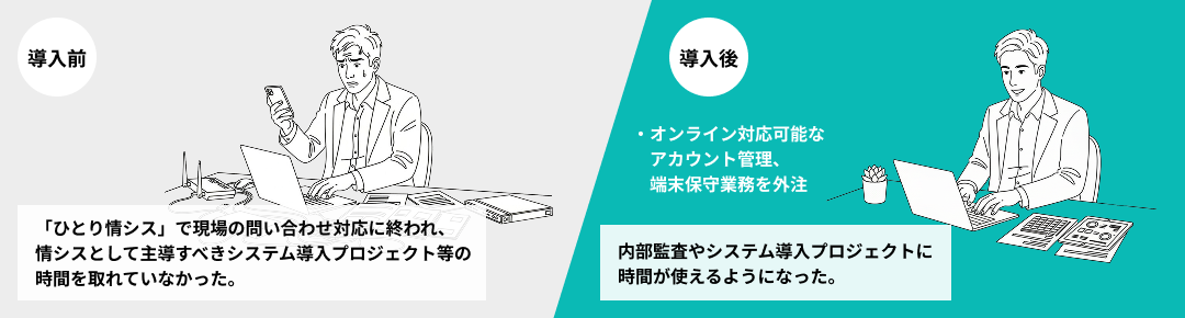 これによって、社員はコア業務に集中できる環境ができ、会社の成長にフォーカ